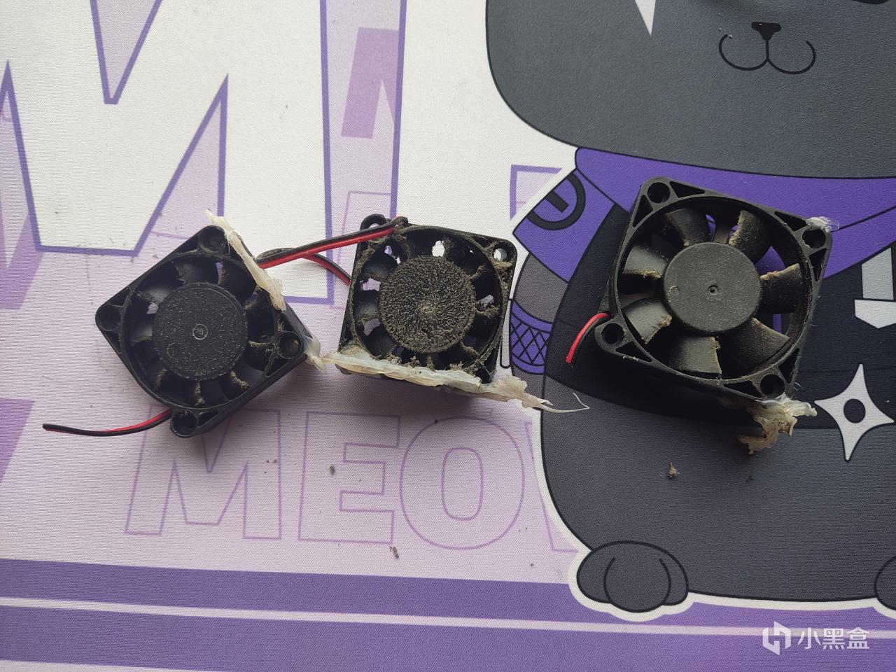 再來看看上次改裝的主要功臣,左面兩個4010風扇異響嚴重,右面的5010風扇應該是很久之前就被鏽死了,看來油封軸承的風扇確實只適合臨時用用
