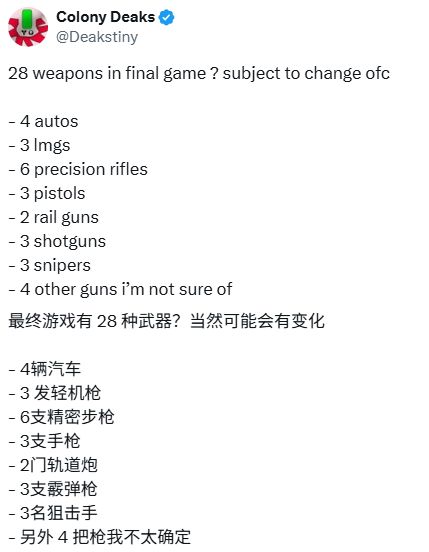 据传《失落星船:马拉松》首发将包含28种武器。详情如下。