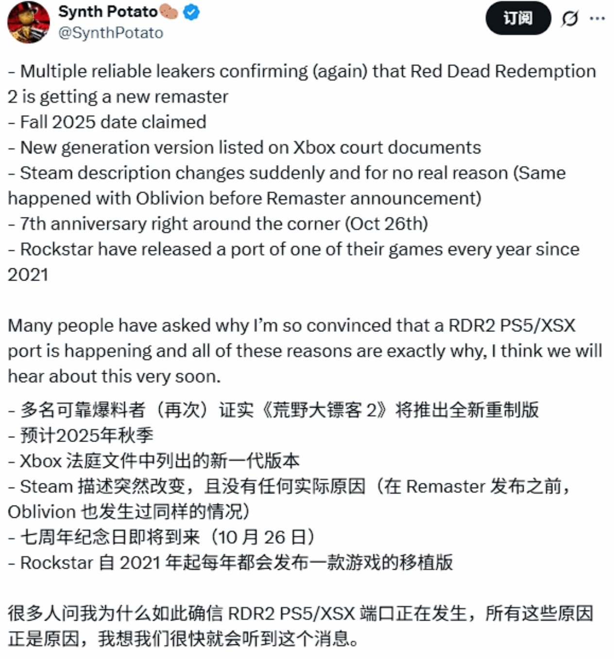 曾创下销量奇迹的《荒野大镖客:救赎2》可能即将迎来次世代升级。随着游戏发售七周年纪念日(10月26日)临近,玩家发现其Steam页面描述近期发生微妙改动,这被广泛视为增强版即将发布的信号。