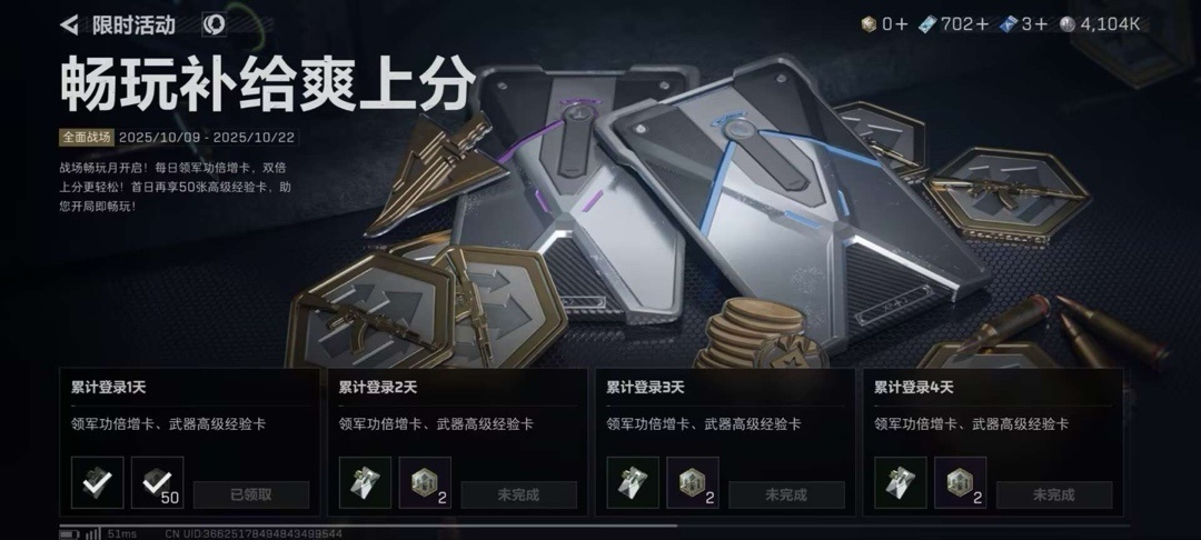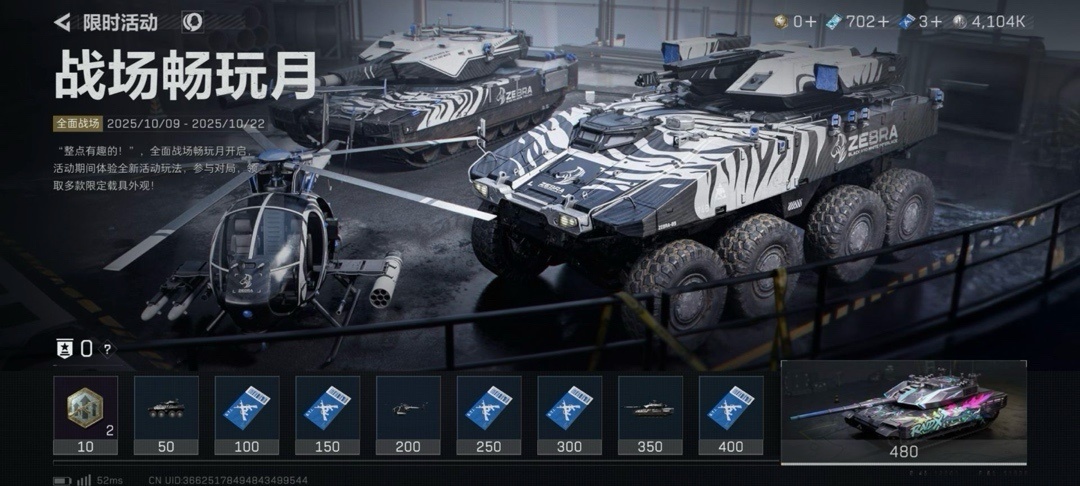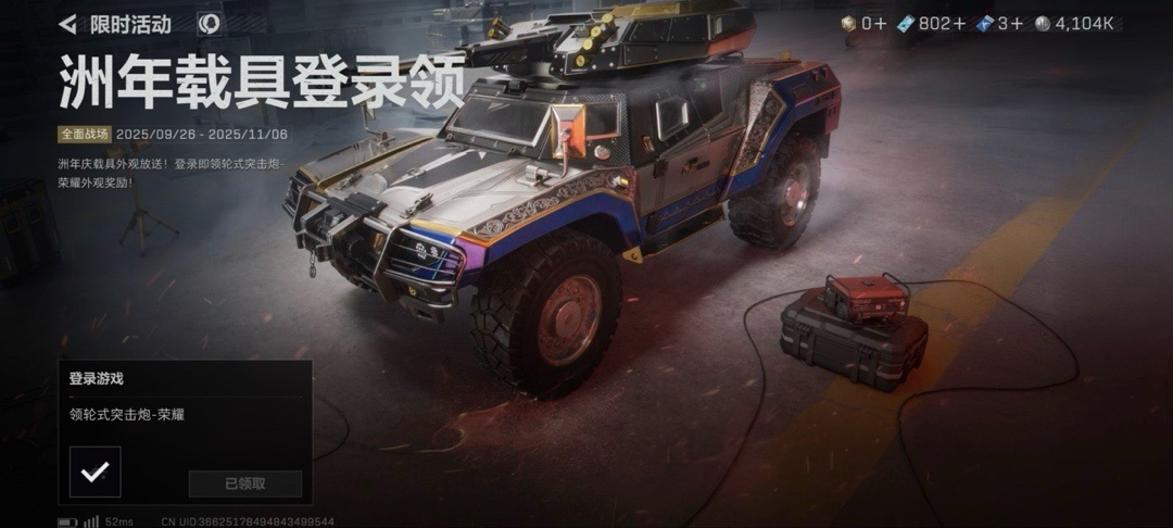 还有一个之前免费送载具皮肤的活动,点到大战场就可以领,没领的可以领一下!