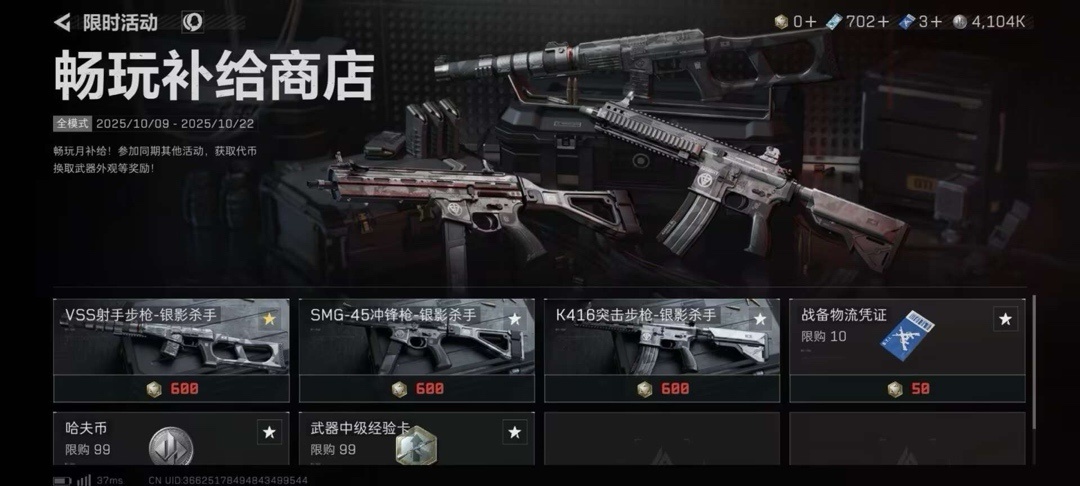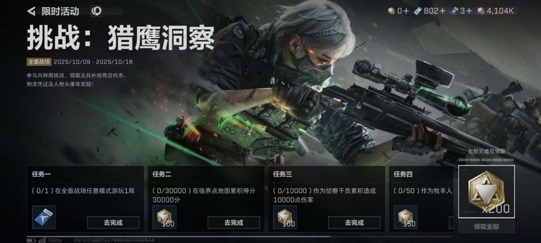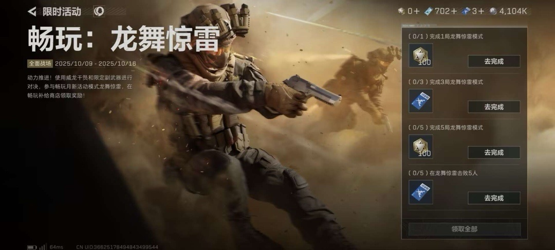 用威龙和对应武器,完成对局获得活动代币