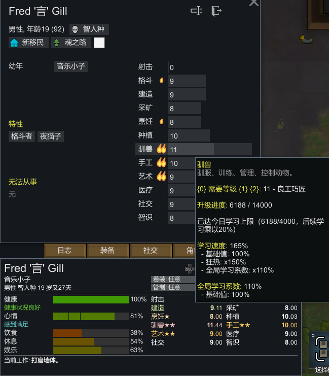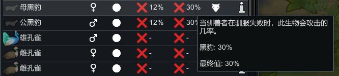 - 注意:部分动物驯服时有几率失败攻击小人,所以前期驯兽等级不高时,建议选温顺的动物练手