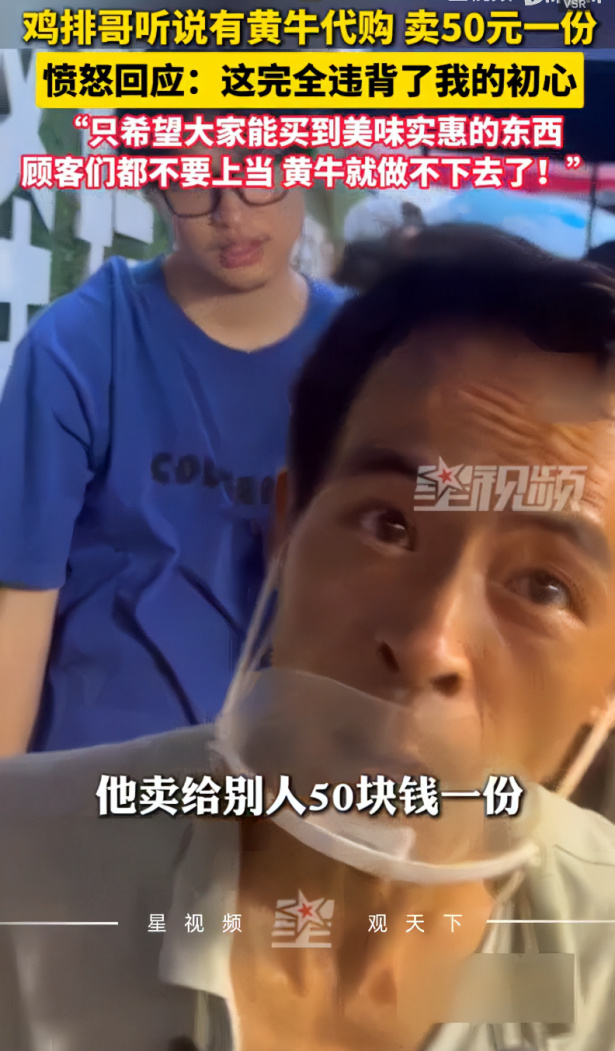 镜头里的人潮熙熙攘攘,现场有无数人想要见识这位“鸡排主理人”的语言魅力,更想听他讲出一个又一个的火爆金句。甚至,还会有黄牛加价出售鸡排,好事者主动高价请人代购,只为在这场狂欢中凑上一点热闹。
