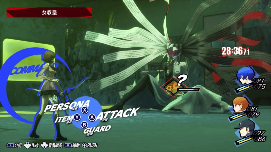 Q:《女神異聞錄3 Reload》中全新加入的“神通法”爲戰鬥帶來了新變化,同時本作還引入了《女神異聞錄5 皇家版》中廣受好評的快捷指令和輔助功能。對玩家而言,戰鬥系統是遊戲核心吸引力之一。請問製作組設計 “神通法” 時,是怎樣考慮其與原有戰鬥機制結合的?而引入快捷指令和輔助功能的初衷又是什麼?