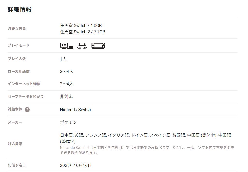 根据任天堂的My Nintendo Store显示,旗下一方游戏《宝可梦传说:Z-A》的容量在近期进行了一次更新,详细变更如下。