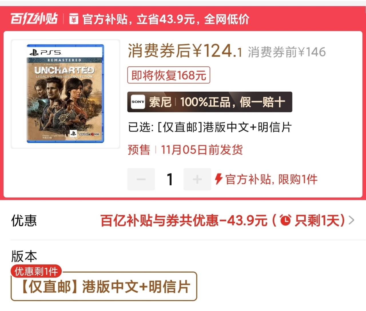 神祕海域合集帶特典,神價,百補史低121海外版,這個還帶dlc,想買無腦入。