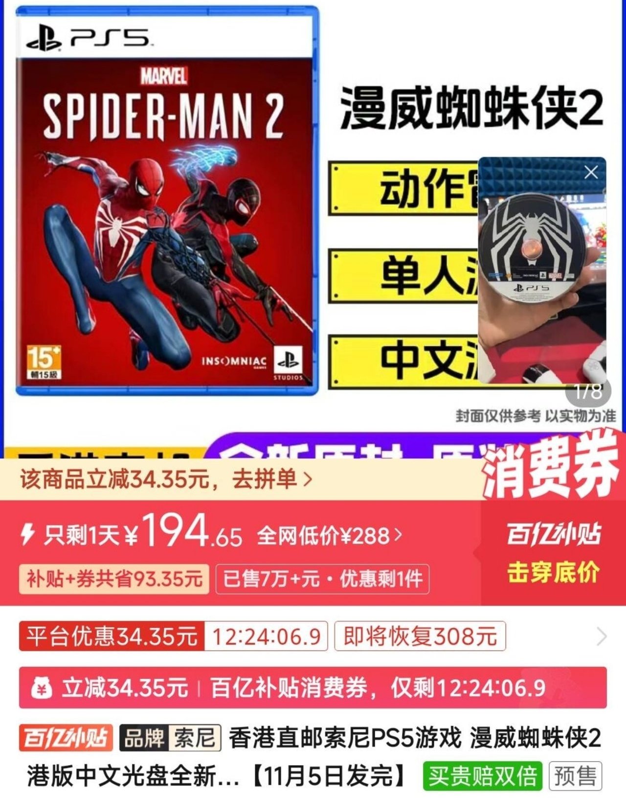 蜘蛛俠2 194,這批裏面最搶手的,比二手便宜50+。
