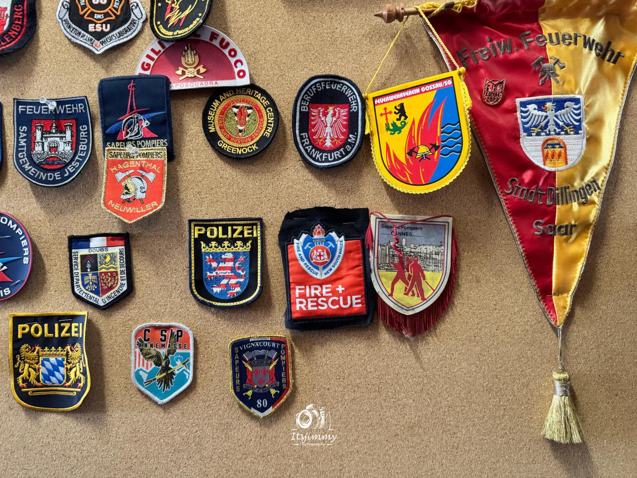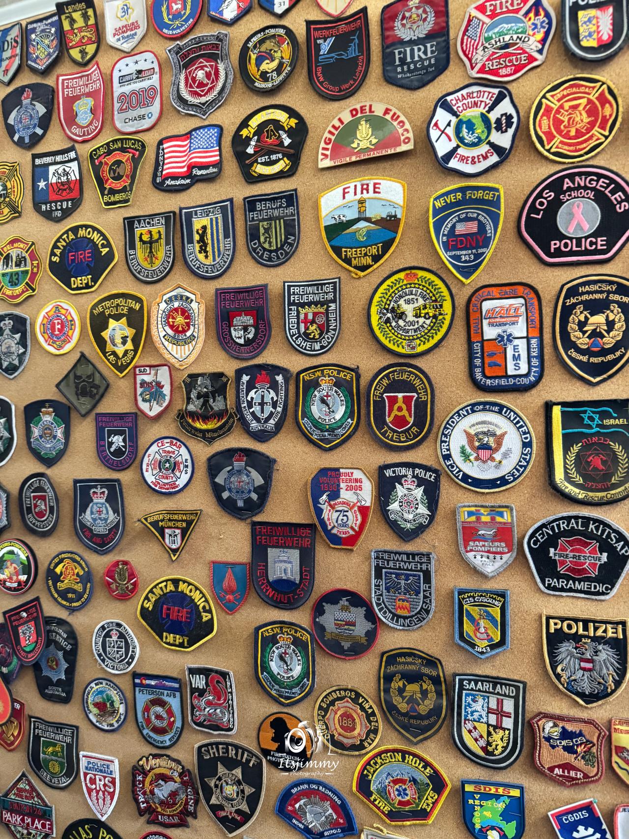 在消防站里参观时,我注意到臂章墙上面还贴着来自澳大利亚·新南威尔士州警察部门(New South Wales Police Force),以及新南威尔士州消防部门(Fire and Rescue NSW)的臂章. 我与这些臂章已经打了近两年的交道,因此立刻就在一墙臂章里认出了它们. 消防员说这些臂章很可能来自非官方渠道(比如警员之间的直接赠予),因为BHFD经常参加各种国际间的消防交流活动,而且新南威尔士州的消防部门和森林消防也确实参与到扑救加州山火的工作当中,因此这些徽章出现在这也是合情合理.