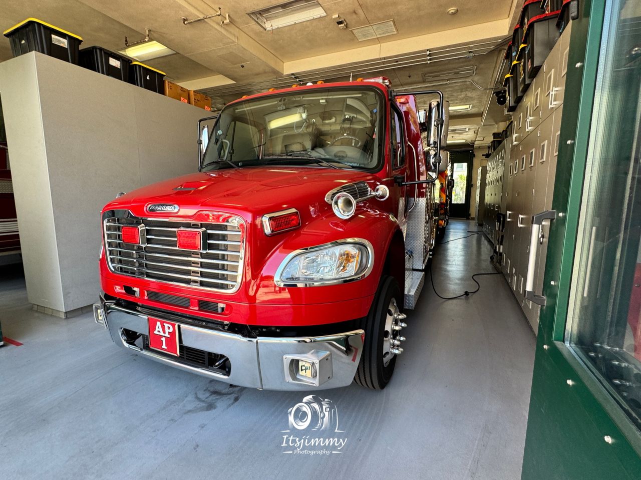 在前几个月山火肆虐的时候,这辆搜救车经常响应临近城市的警情呼叫. BHFD与洛杉矶市和包括西好莱坞在内的临近几个自治市都签署了互助条例(mutual aid),并且都接入了由LAFD主持开设的大都会消防警情联络系统(Metropolitan Fire Communications). 消防员表示,BHFD随时准备协助友邻单位处置险情,事实上,在我们参观时,Engine 1就在协助洛杉矶消防部门(LAFD)处置一起事故. 由于LAFD的人力短缺和所服务的城区广袤,BHFD经常会响应他们的互助请求前往处置险情.