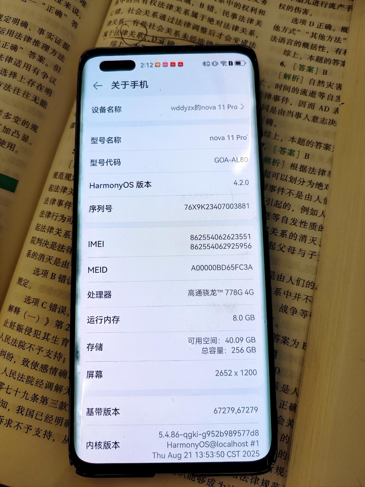 國慶節假期前,我父母給我打電話,說要給我寄點物資,我跟他們抱怨說我的紅米k50至尊版現在卡的不行了,而且電池不耐用了。這臺機子是我22年過年時期打工買的,這幾年可以說是鞠躬盡瘁了。父母說我們家正好有一臺備用機,可以給我寄過來,我頓時一頓欣喜啊,忙問是什麼手機。他們說是華爲。我從小便對華爲有種崇拜的感覺,高中時藏起來用的手機正是華爲p10。在我大學剛畢業時,用的也是二手的華爲p30,性能不算過時。這下我更興奮了,忙問是哪個型號。沒想到竟是在2023年急天地泣鬼神的一代“機皇”,華爲nova11pro,還好,不是se。但是查了查這個手機的資料,也是驚到我了