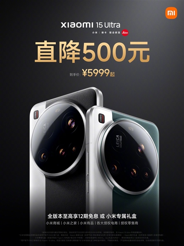 快科技10月9日消息,据小米官微消息,小米15 Ultra即日起全版本特惠500元,到手价5999元起。