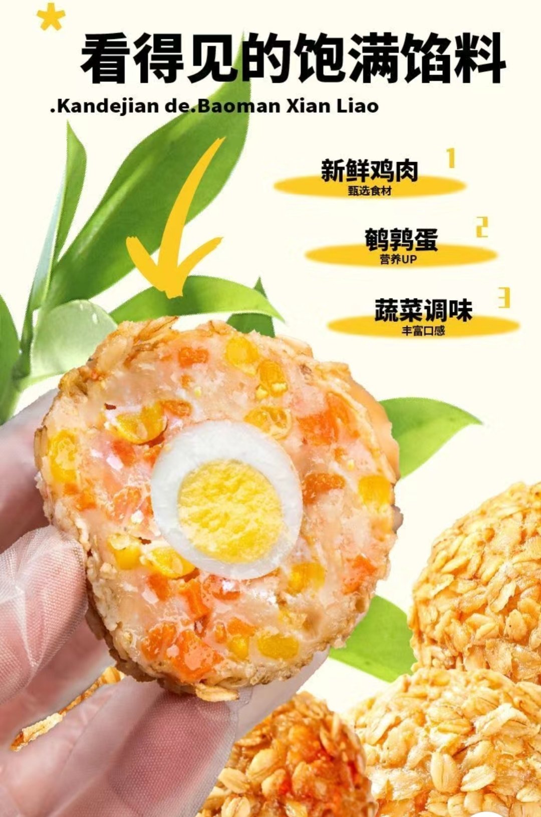 这玩意儿,看图是不是还不错,配料表也很简单,鸡肉鹌鹑蛋燕麦片胡萝卜和玉米粒。