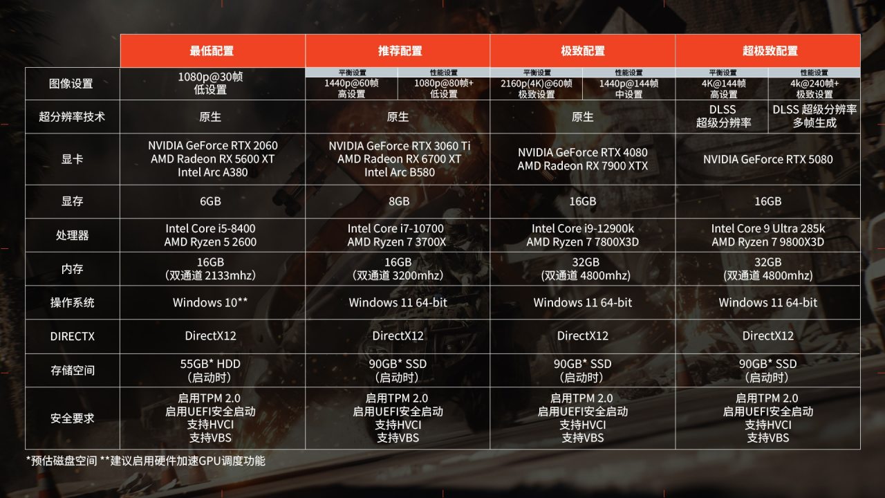 顯卡:Nvidia RTX 2060 / AMD Radeon RX 5600 XT / Intel Arc A380