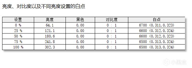 ▲在SDR模式下,其亮度最大約爲300nits,而在HDR下亮度更高,可以獲得VESA DisplayHDR Trueblack400 認證,色溫則牢牢鎖定在6500K附近。