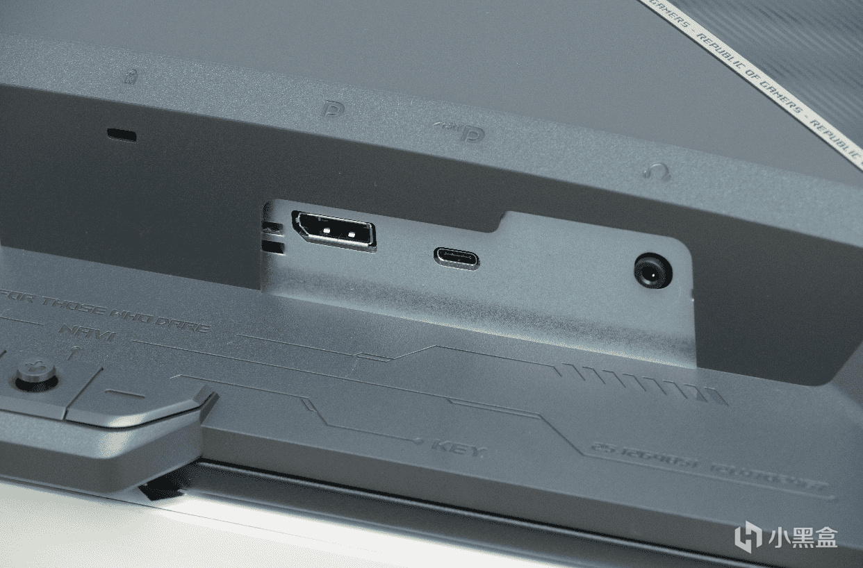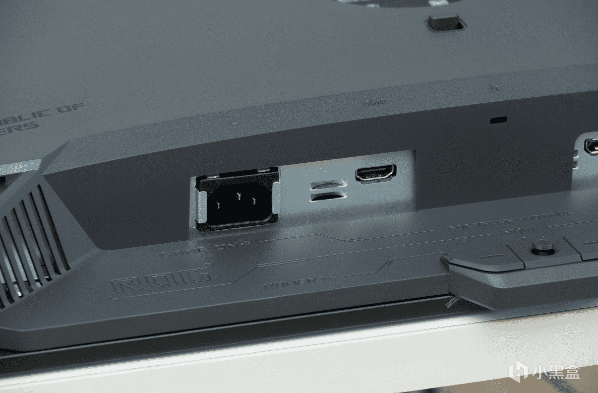▲ROG 超殺27採用了內置電源設計,接口方面,ROG絕殺25電競顯示器配備了HDMI、DP、全功能 Type-C接口各一個,硬件兼容性極好,同時顯示器還配備了一個3.5mm音頻輸出接口,方便連接耳機或者獨立揚聲器使用,個人感覺接口還是略少了點,再多一個HDMI接口明顯會更好,畢竟現在同時擁有Switch2與PS5的玩家還是很多的,再多一個HDMI接口就不用玩家來回切換了。