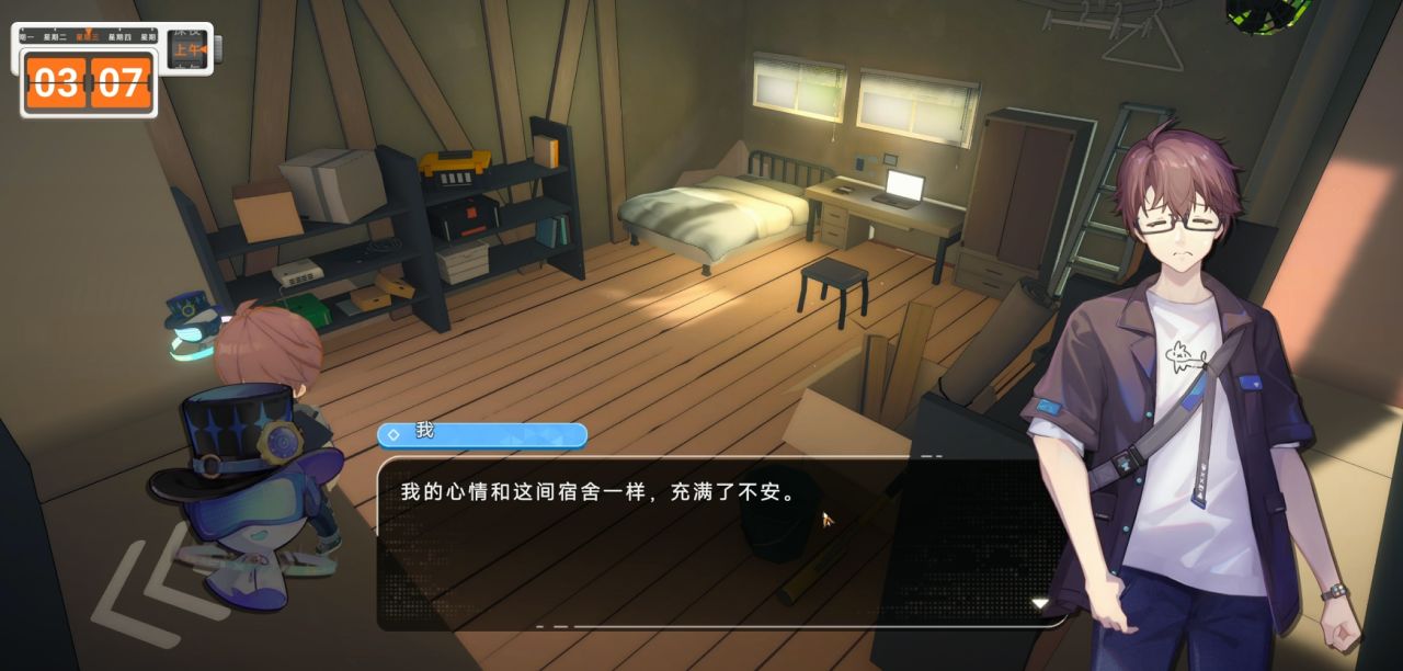 场景地图也蛮大,虽然有些地方可以互动,但只有文本的吐槽,可探索的内容比较少,或许正式版本会加入更多有趣的互动呢。