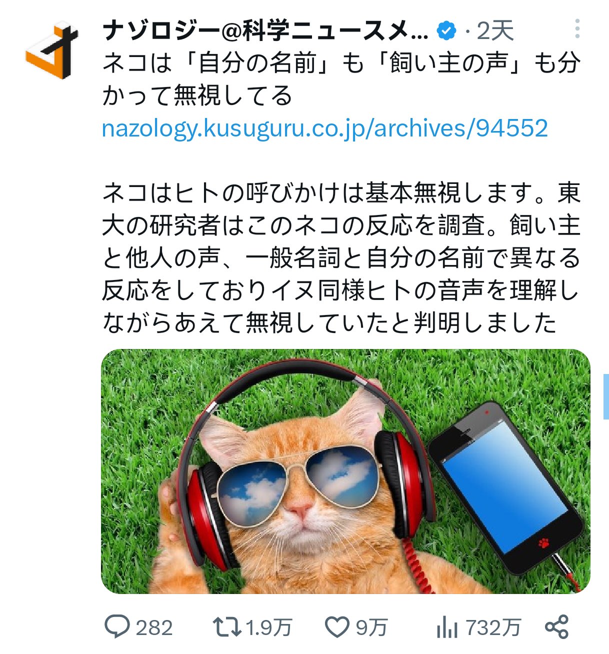 ナゾロジー@科学ニュースメディア(Nazology科学新闻媒体)发表了一篇普通的科普文章,但却吸引一堆人分享“猫猫”