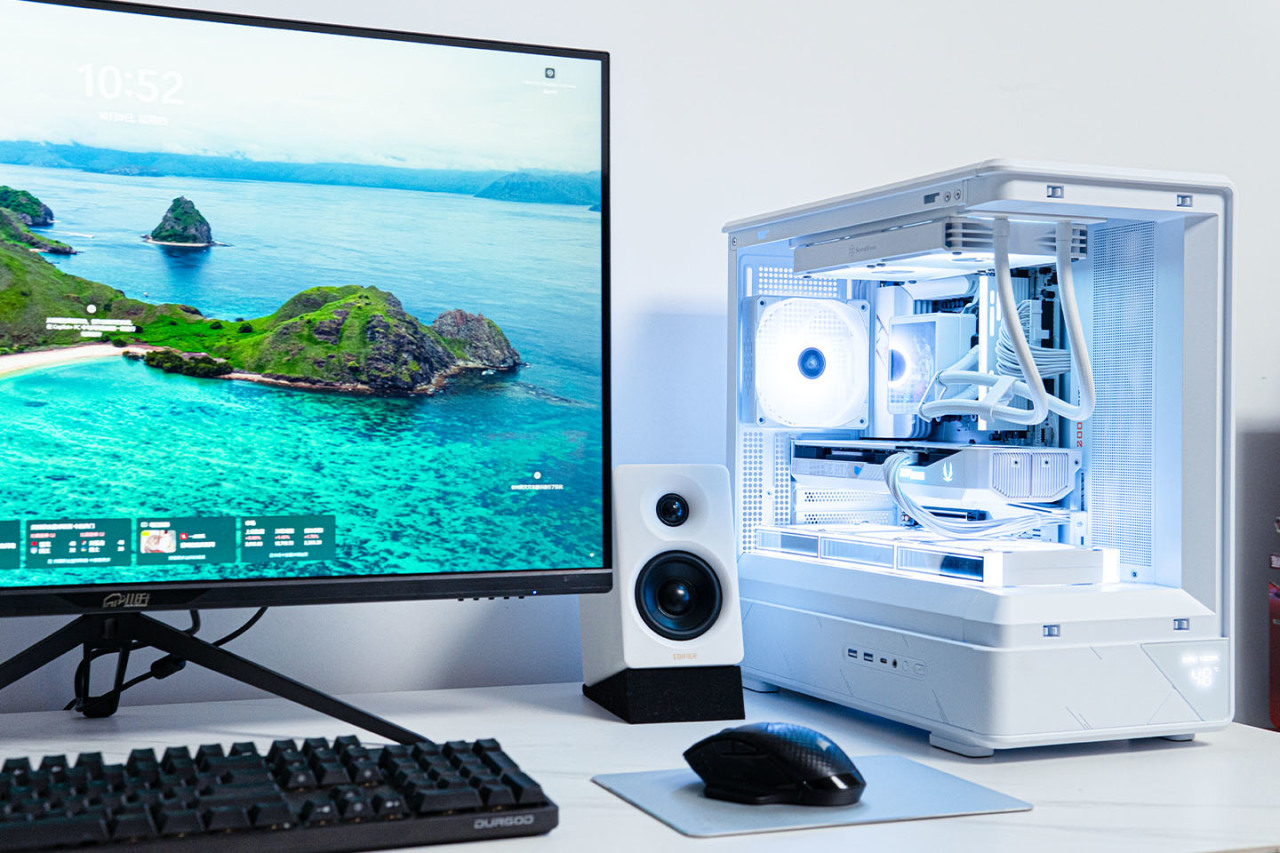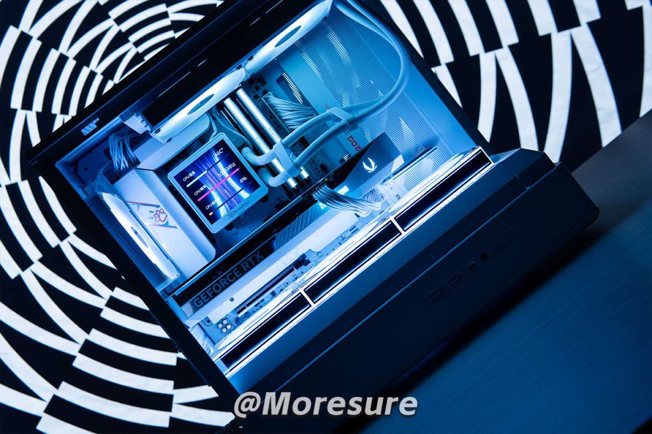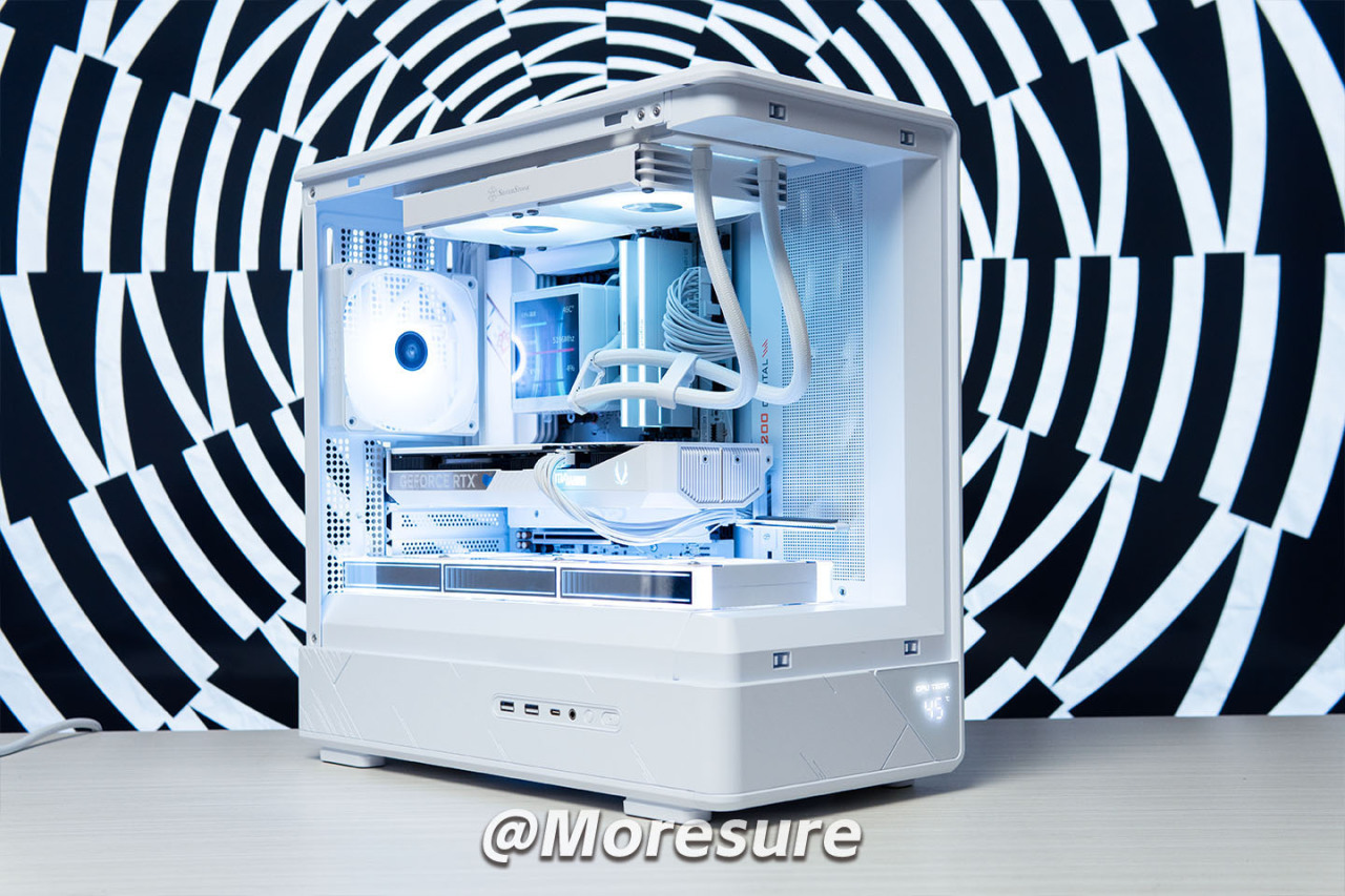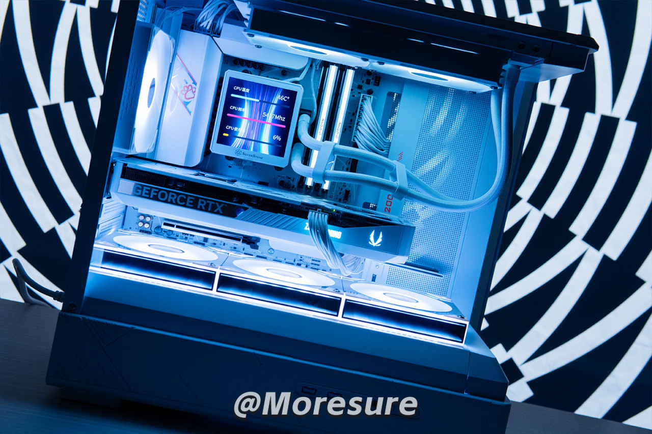 作为MATX机箱,乔思伯D200使用上下分仓结构,整机比较小巧,一体曲面玻璃使得内部硬件展现无割裂感,纯白色和显卡、主板、内存等硬件也比较好搭配,机箱内部的空间还算宽裕,装机走线没有难度。