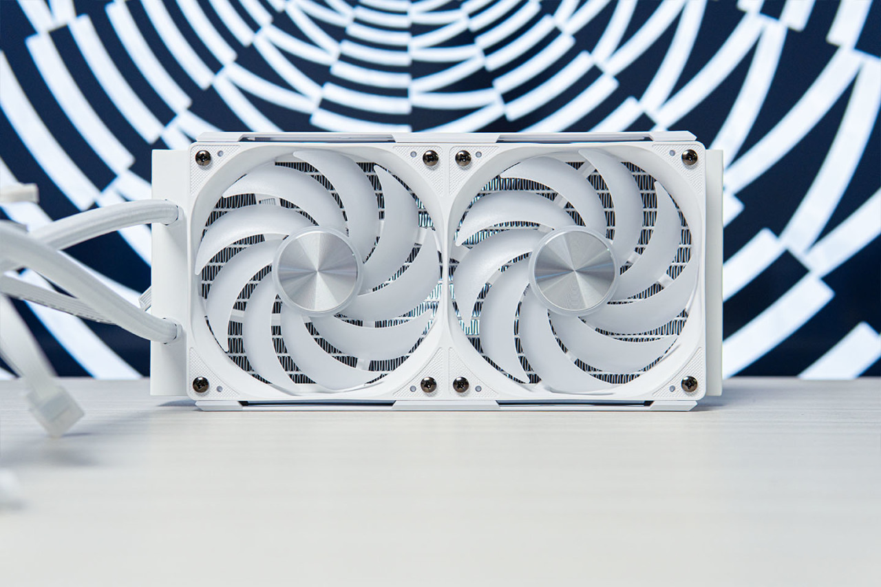 连体扇线材从一侧位置伸出,单线比较好走线。银昕E260 MAX支持Intel和AMD双平台,冷头水泵转速最高可达3000RPM,冷头使用大面积全铜底座,可以很好的和CPU贴合,官宣其解热功耗为280W,压制9800x3D这种旗舰芯片完全没问题。