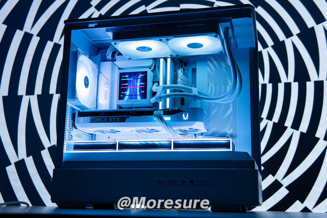 右侧前端做了细密开孔,可以增加机箱进风量。