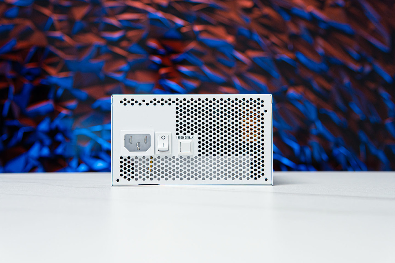 安钛克NE1000使用120mm规格散热风扇,最高转速接近200RPM。安钛克NE1000电源供电接口处有独立的开关和HYBRID MODE按键,HYBRID MODE即低于等于50%负载时风扇停转以及温度高于45℃时风扇开启巡航模式,追求静音的玩家可开启此模式。
