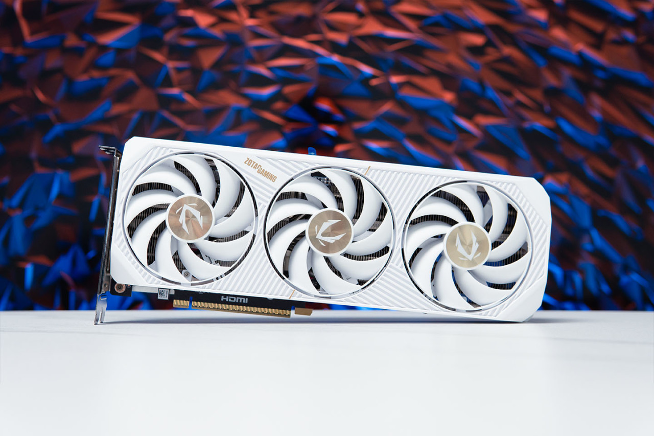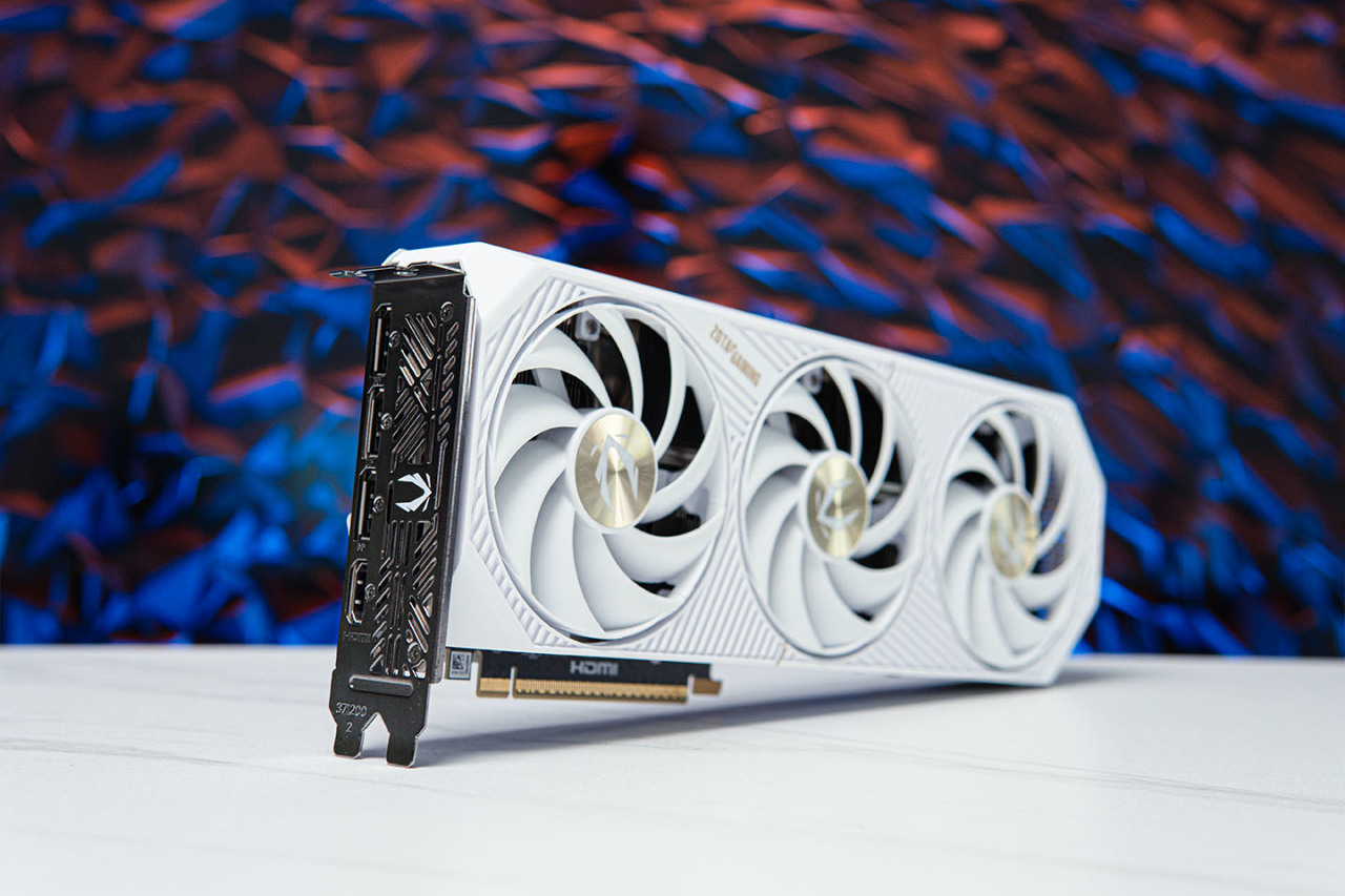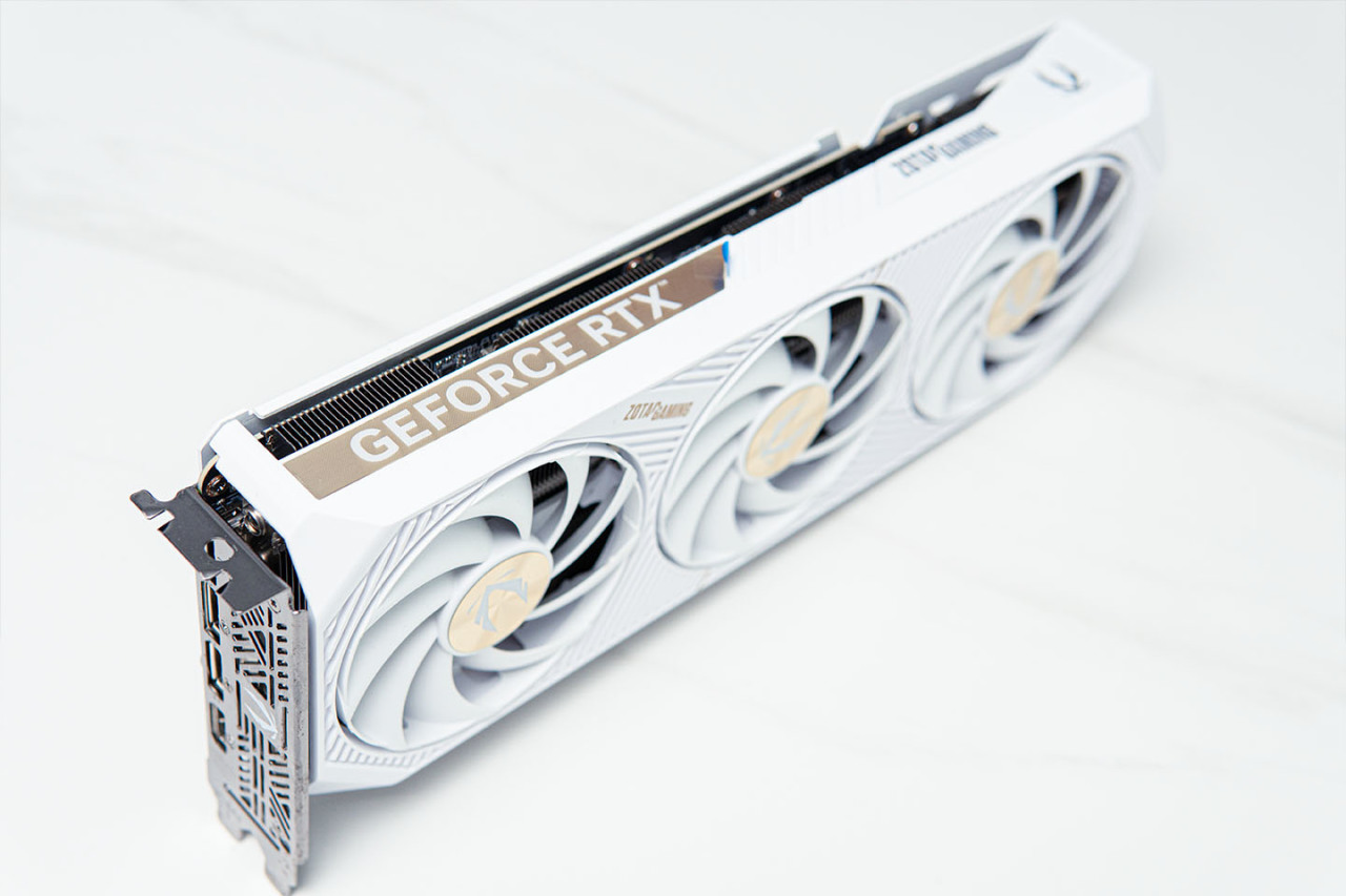 索泰RTX 5070 Ti SOLID白算是目前50系热门的白色卡之一,简洁外观非常适合海景房装机使用,其正面有3个环刃风扇,扇叶有圈导流风罩,配合页面曲率优化,可有效降低风噪,提升风量、风压,提升散热效率。