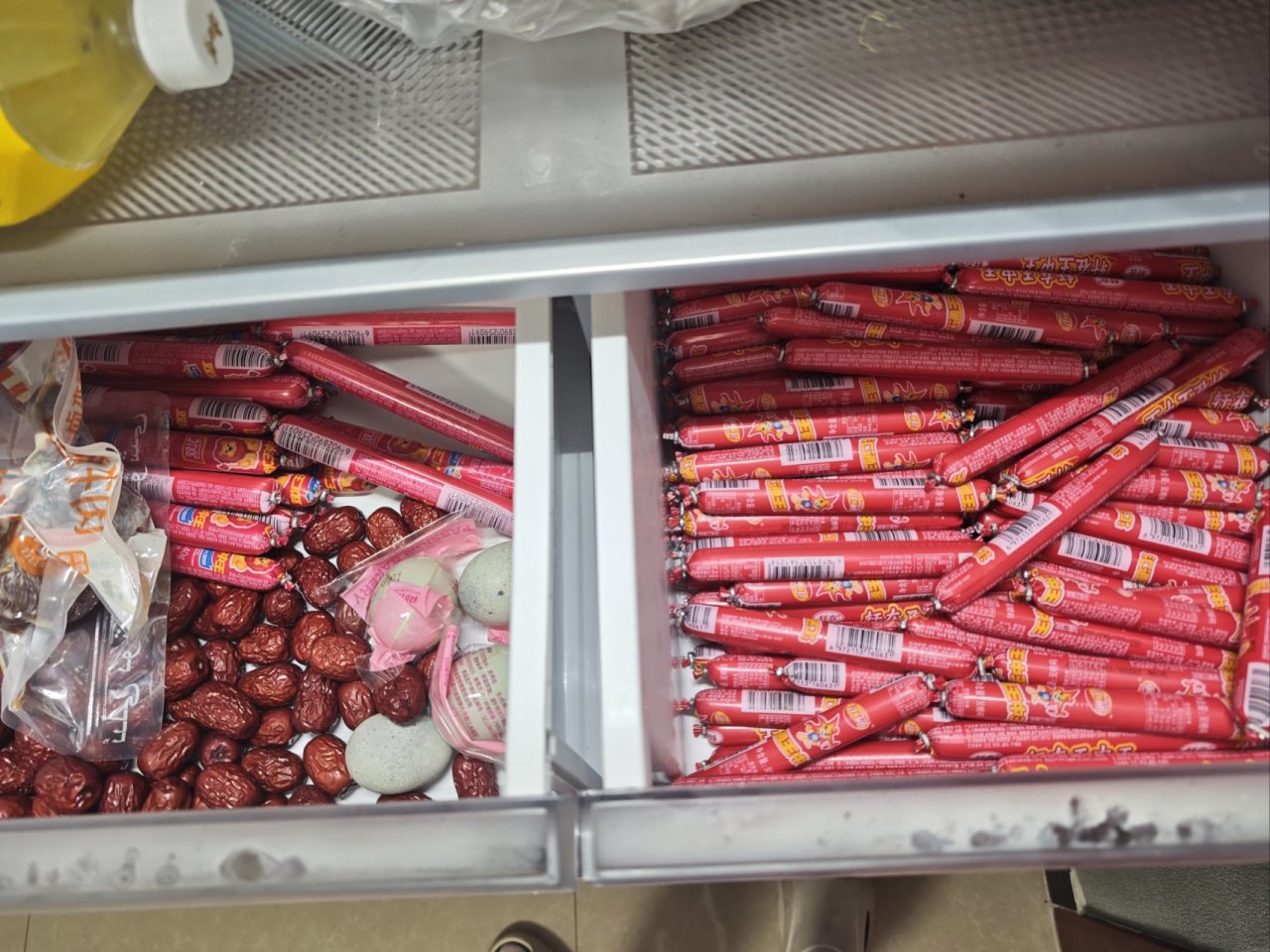 我爸爸真的很爱他,给他买了好多玩具,给他买了一抽屉的火腿肠