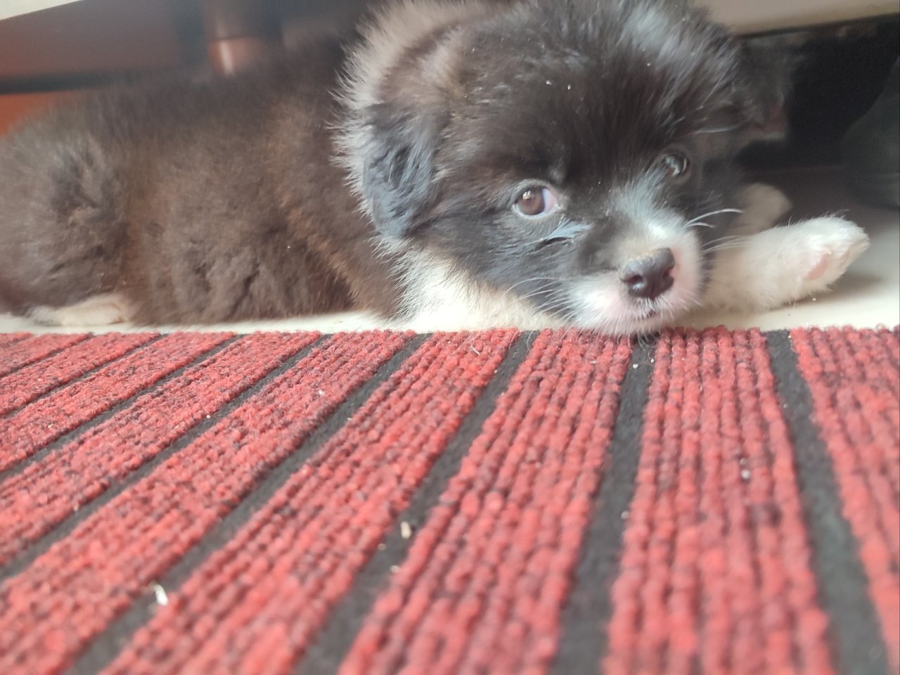 回家了之後十八很乖很可愛,當時他也只有兩個月大,第一次去一個陌生的地方難免會感到恐懼和緊張 十八當時最喜歡趴在鞋櫃子下面 或許那一點狹小的空間會讓他得到些許的安全感
