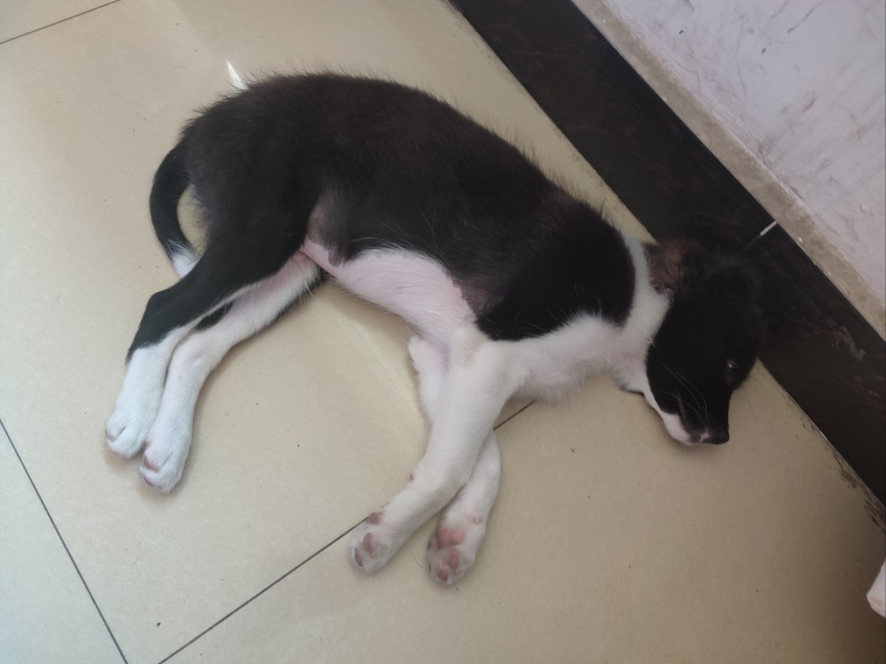 第一次见十八的时候,他在一个狗贩子手里抱着,我和我的爸爸一见到他就走不动路了,十八长的十分可爱,黑白相间的毛发让我十分喜爱,于是我们花了180元将他带回了家