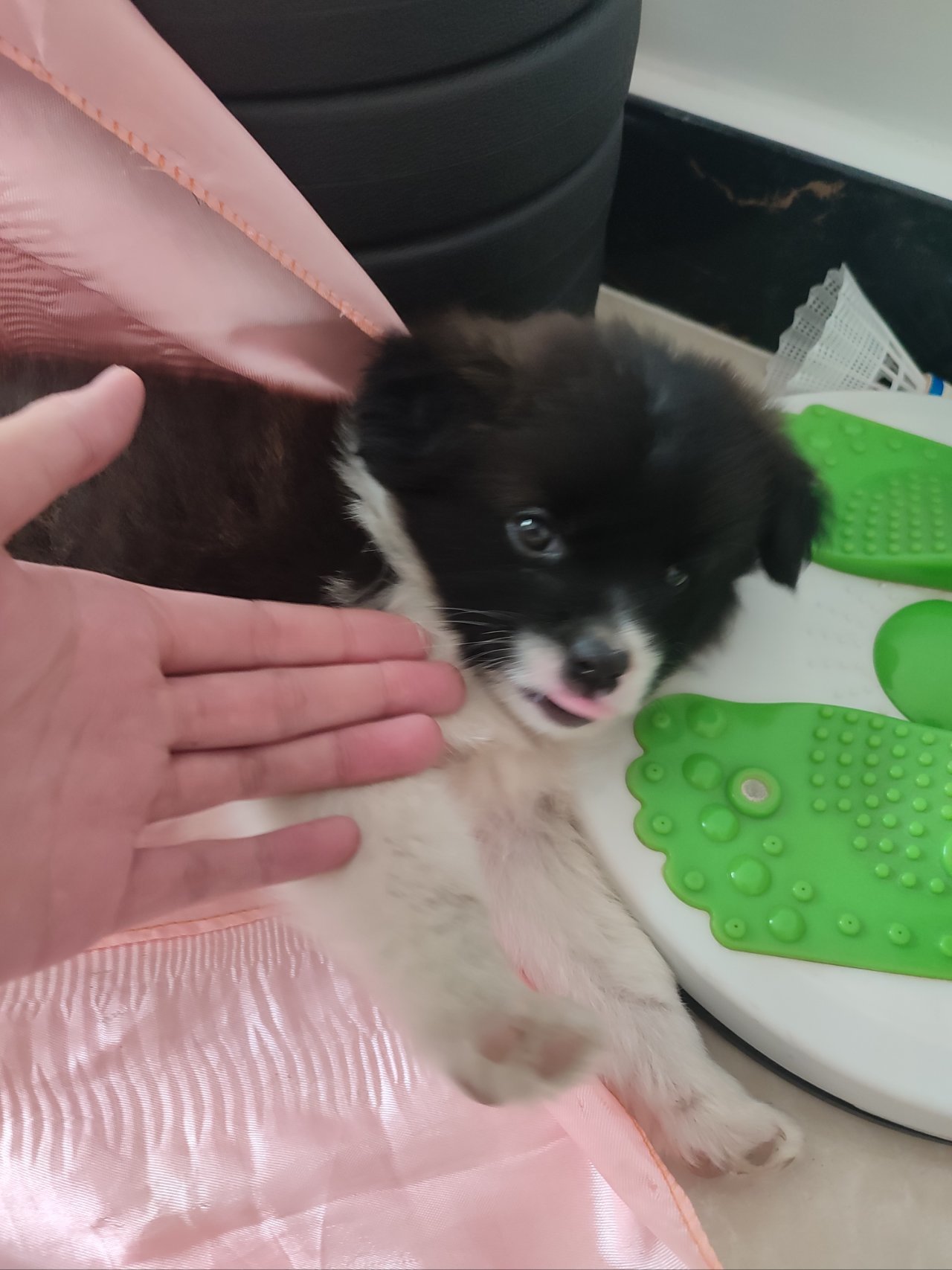 第一次見十八的時候,他在一個狗販子手裏抱着,我和我的爸爸一見到他就走不動路了,十八長的十分可愛,黑白相間的毛髮讓我十分喜愛,於是我們花了180元將他帶回了家