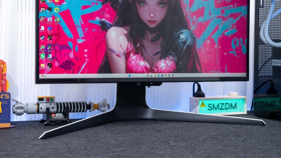 作爲25年的升級款來講,其外觀整體未發生顯著變化,但仍延續了此前極具辨識度的電競美學設計語言。其中,"光之翼"美背設計及多功能支架系統等標誌性特徵均得以完整保留。但是我還是希望後續升級之後可以看到些變化,比如外置適配器是否可以考慮改爲內置設計?以及未來是否會提供雙模式顯示預設,在堅固4K 165Hz的同時,還可以提供比如1080P分辨率下320Hz甚至更高的刷新率來滿足極致FPS遊戲玩家使用需求呢?