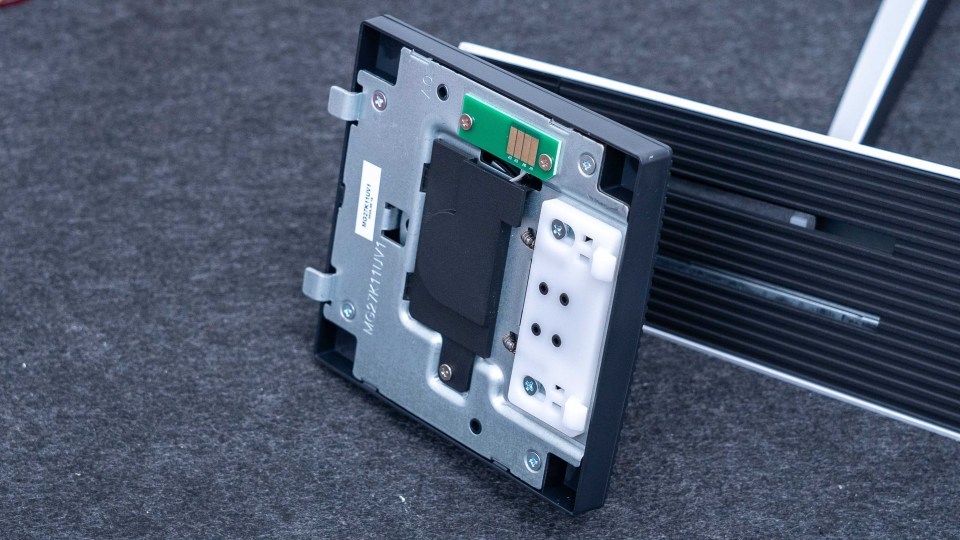 支架部分,背面依舊設計了RGB燈光效果,可以通過觸點與顯示器背後卡口連接。