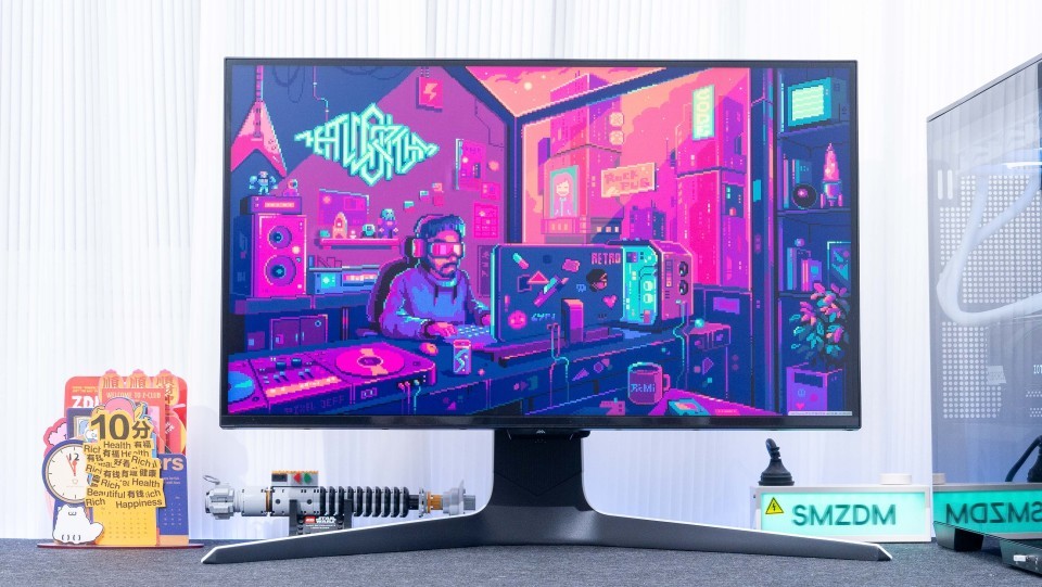 作为25年的升级款来讲,其外观整体未发生显著变化,但仍延续了此前极具辨识度的电竞美学设计语言。其中,"光之翼"美背设计及多功能支架系统等标志性特征均得以完整保留。但是我还是希望后续升级之后可以看到些变化,比如外置适配器是否可以考虑改为内置设计?以及未来是否会提供双模式显示预设,在坚固4K 165Hz的同时,还可以提供比如1080P分辨率下320Hz甚至更高的刷新率来满足极致FPS游戏玩家使用需求呢?