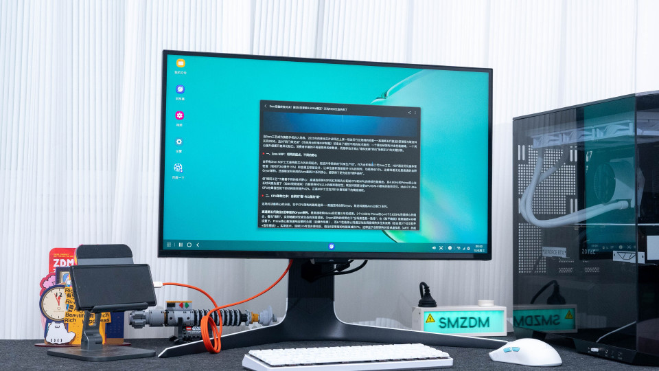 此外在工作場景下,除了滿血的HDMI 2.1以及DP1.4接口之外,它還提供了支持反向90W充電的全能C口,可以方便的通過Type-C線材實現一線連接你的Mac筆記本或者電腦使用。