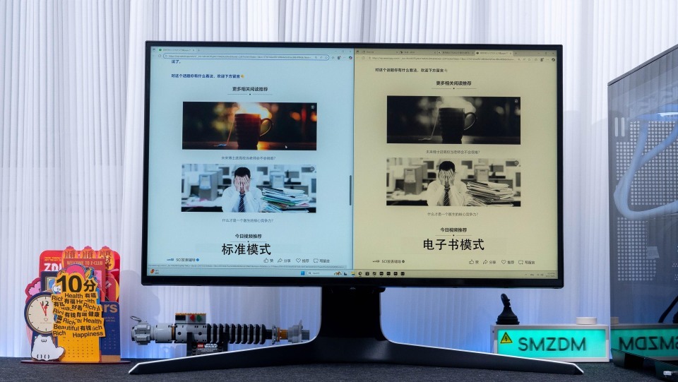實測在電子書模式下,屏幕顯示效果會默認變成黑白顯示效果類似於我們熟悉的電子書顯示效果,對於長時間閱讀使用非常友好。