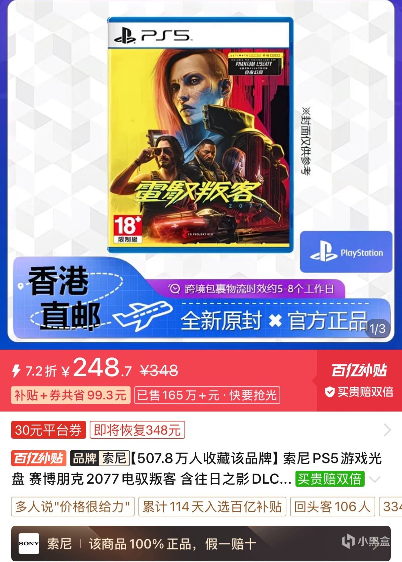 1.PS5游戏《赛博朋克2077终极版》港版中文248.7元全新包邮