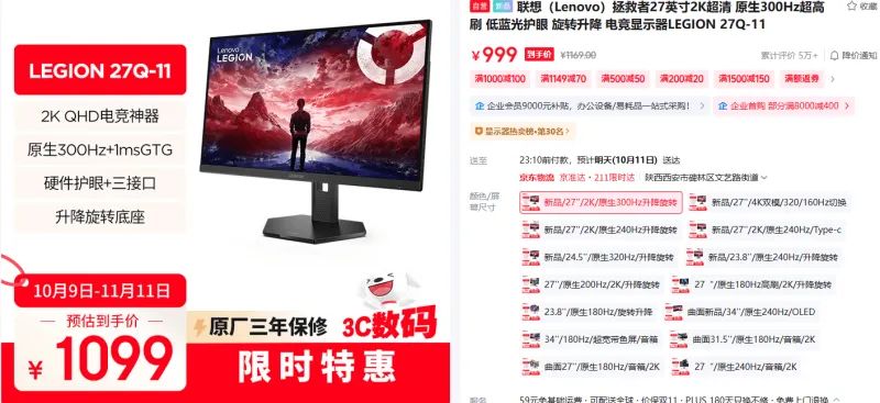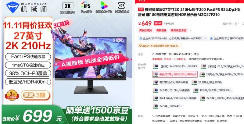 現在買顯示器80%都會考慮27英寸2K高,699左右就能買到三年前1299-1999差不多性能的