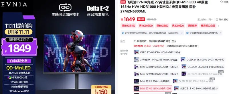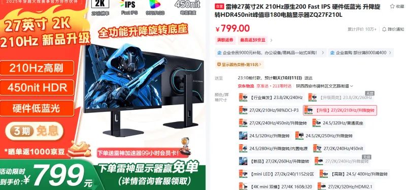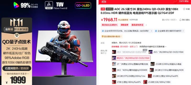 3款推薦的顯示器,大概率使用京東方ME270QHB-NF0面板