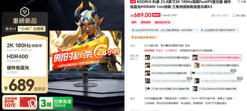 第1款SANC 大概率是京東方面板MV238FHB-NF5,原生240Hz,遊戲性能在同價位第一梯隊。