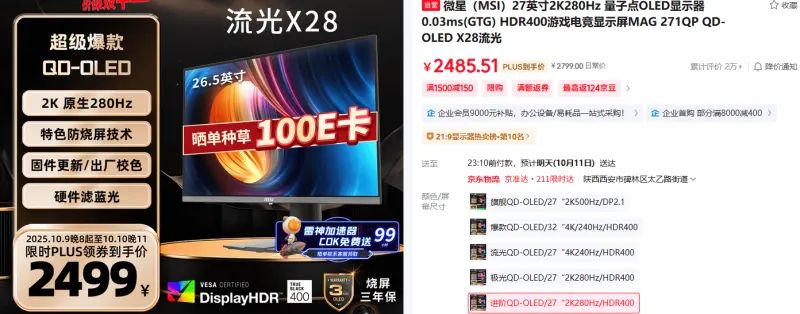 前2款,27英寸2K280Hz 適合主玩FPS網遊爲主 專精FPS,也可作爲玩FPS的副屏使用。