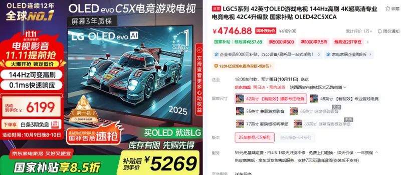喜歡大屏的可以看下42英寸 LG C5 OLED