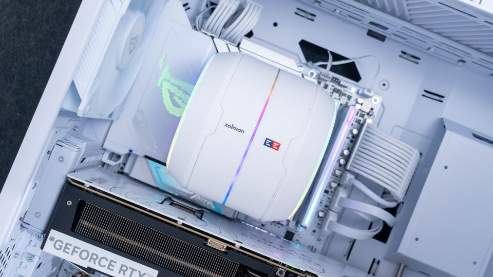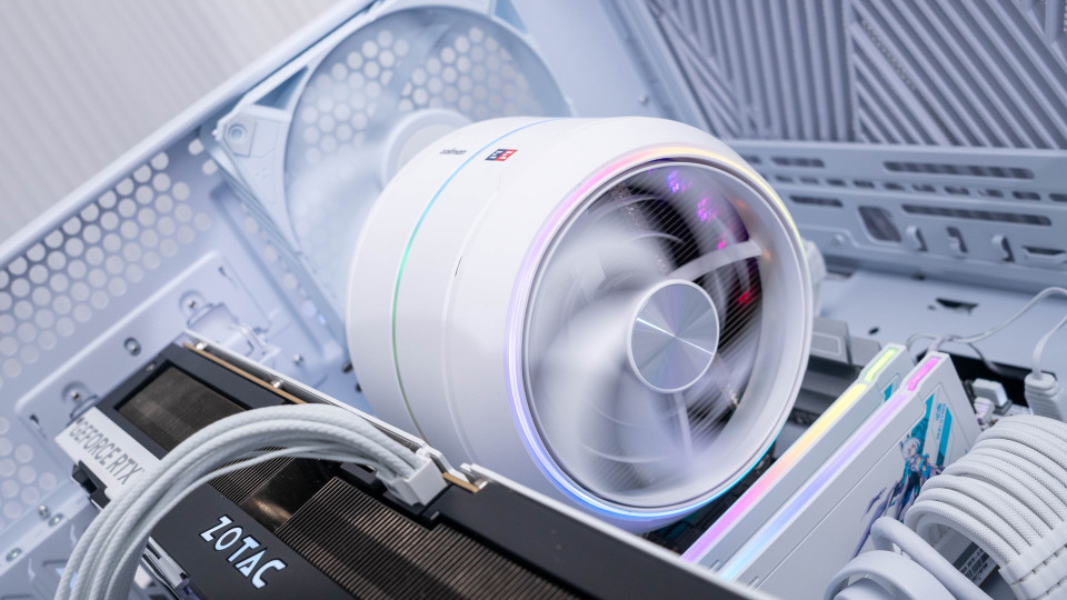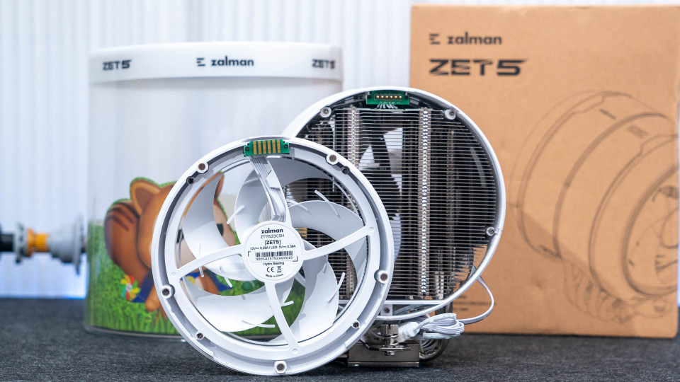 zalman ZET5涡流散热器配备了2个AF120环形风扇,通过五个磁吸点设计与散热的圆形主体采用磁吸连接。另外独特的供电设计,也让两侧风扇摆脱了线材的束缚,日常使用中也会更方便理线。