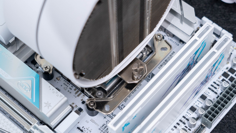 Intel平台配置了金属材质的扣具,通过调节柱间距可以兼容115X/1700平台散热的安装。