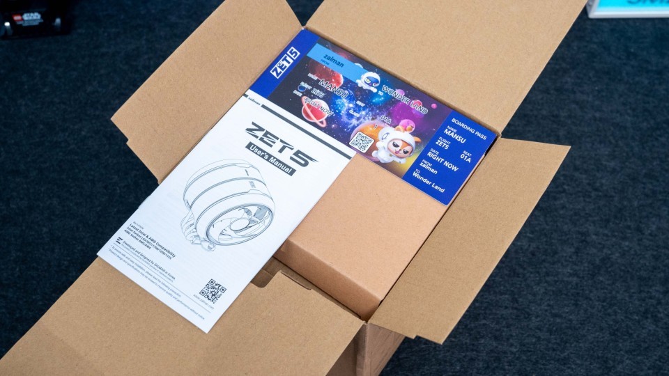 采用透明圆筒形的礼盒包装设计,圆筒顶盖部分还有ZET5的型号表示。