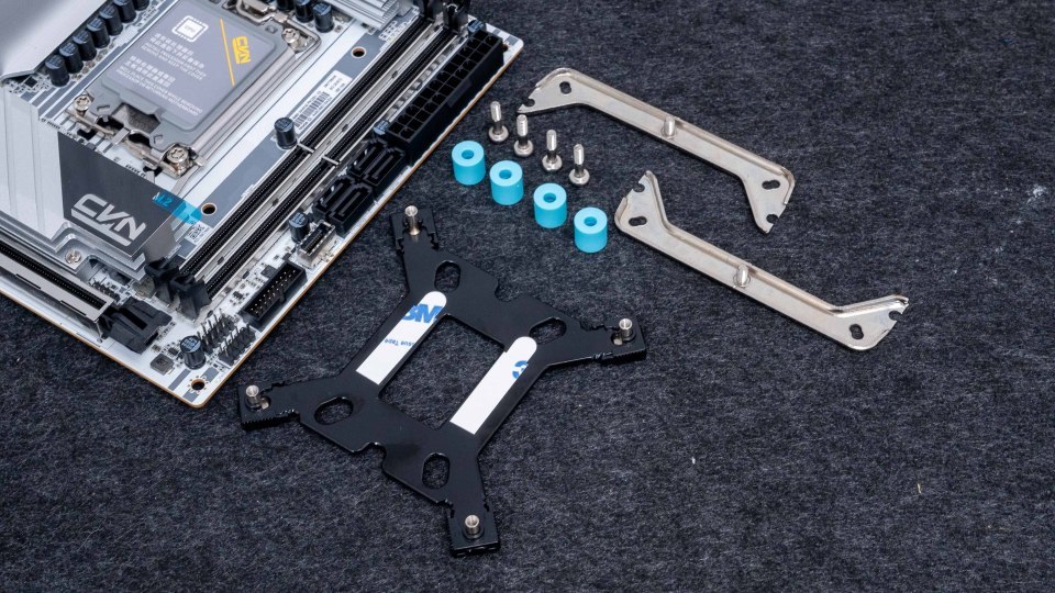 Intel平台扣具一览,搭配的是与Intel标志性蓝色一致的天蓝色底座。