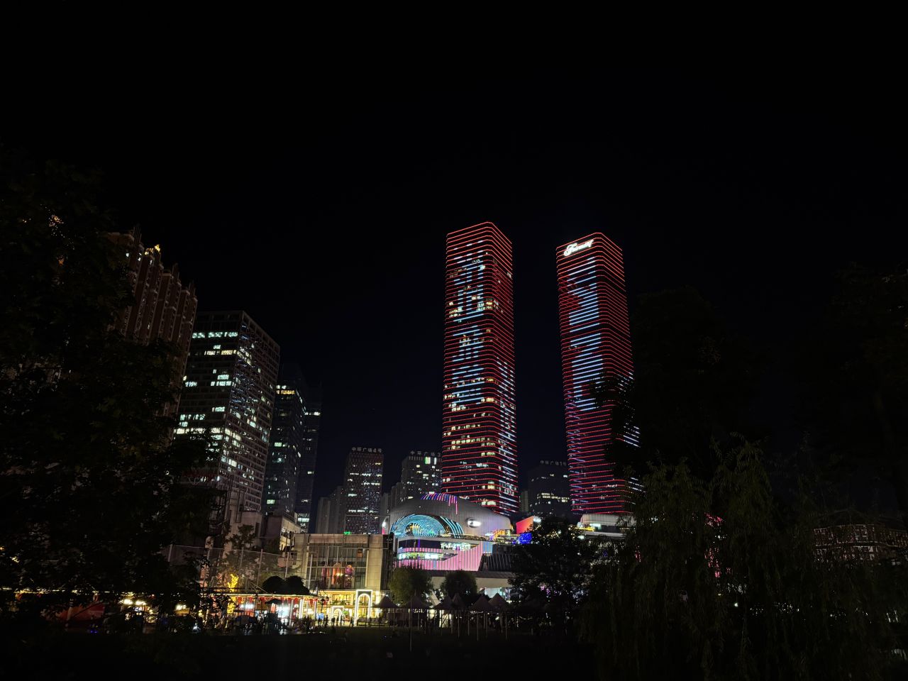 还有双子塔诶晚上亮灯挺好看的