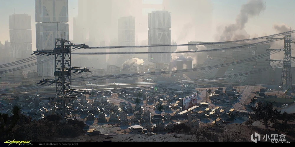 夜之城由六大风格迥异的城区,以及附近的油田与恶土组成。从远处眺望,夜之城最显眼的莫过于市中心的公司大楼于那多条不断上升直冲云端的全息广告,像是农田中熊熊燃烧的烈火,吸引着那些“趋光”的昆虫源源不断的扑入,烧死,并成为它驱动的燃料