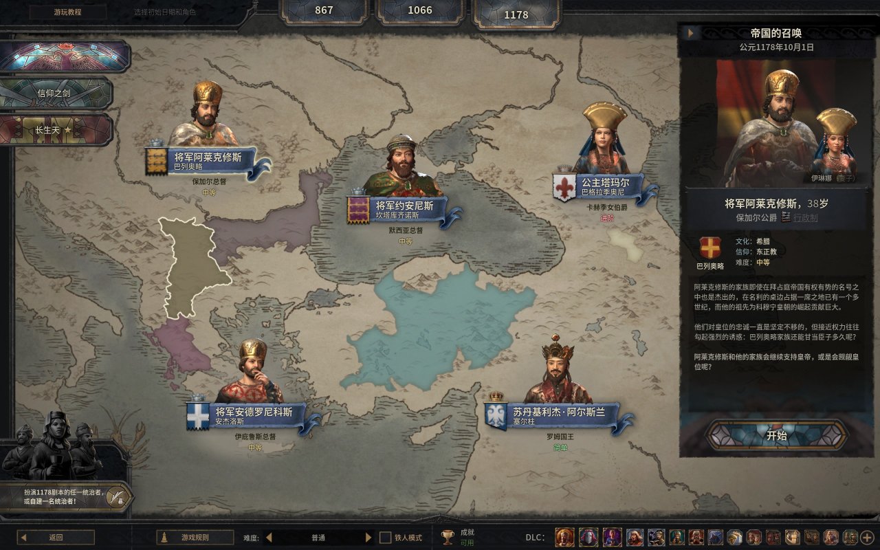 攻略;作为保加尔公爵,你的地盘相对庞大,但是最好将自己的族亲安排到其他将军的位置上,方便在曼努埃尔去世前,利用影响力,提前八十年创建巴列奥略王朝。