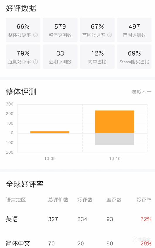 《小小梦魇3》在Steam平台的玩家评价呈现显著分化,截至2025年10月10日,游戏整体好评率已跌至66%,属于“褒贬不一”评级。然而不同语言区的反馈差异巨大,英语玩家好评率维持在72%,而简体中文区的好评率低至29%,在70份评测中差评占比超过七成。这种冰火两重天的评价现象,反映出游戏内容可能存在地区适配或文化接受度的问题。