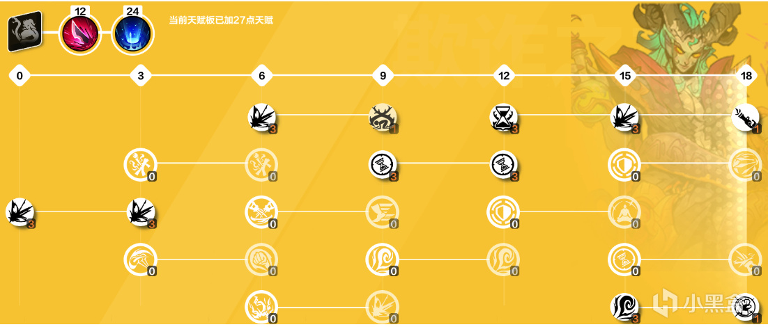 提示:初期節流技能等級不足時,光環無法全開,有什麼開什麼即可。等級足夠後自然能開全。開荒初期資源有限,無法購買暗金衣服或石板補償封印,等到提升階段再把天賦換成巫妖,點出天賦中的補償。